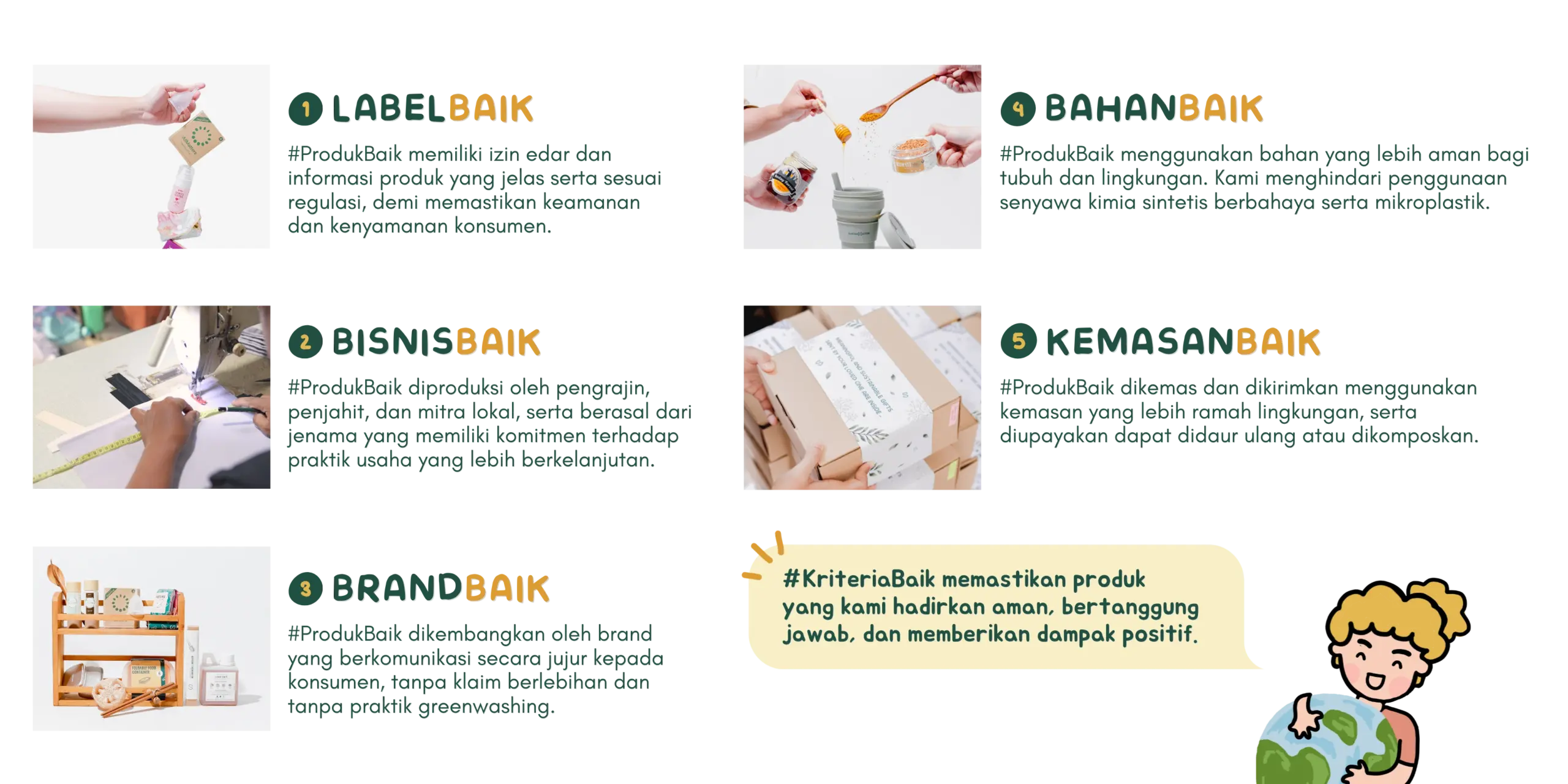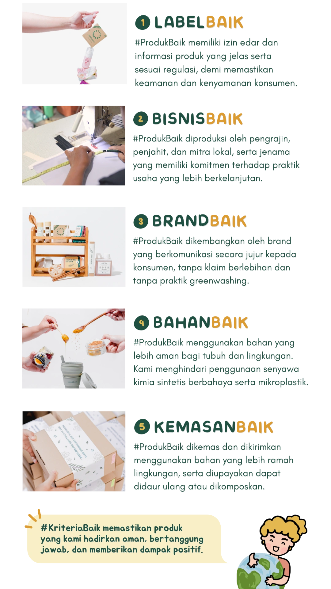 Kurasi #ProdukBaik dari jenama dan mitra lokal dengan misi keberlanjutan yang serupa dan berdampak nyata.