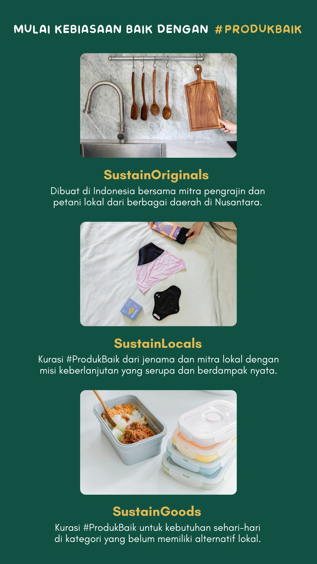 When Tyas went back home to Indonesia, she realized that making a shift towards sustainable living is not that easy in her home country. This is because the access to sustainable products were very limited. So, she founded her online shop starting with the products which she loved the most, a menstrual cup. More products were followed as she believed that sustainable products should be made widely available for people in Indonesia. She carefully curated and selected all the products in Sustaination to make sure that it gives a wonderful experience to our customers. She believes that it is important to promote local and sustainable products which give social and environmental impacts.