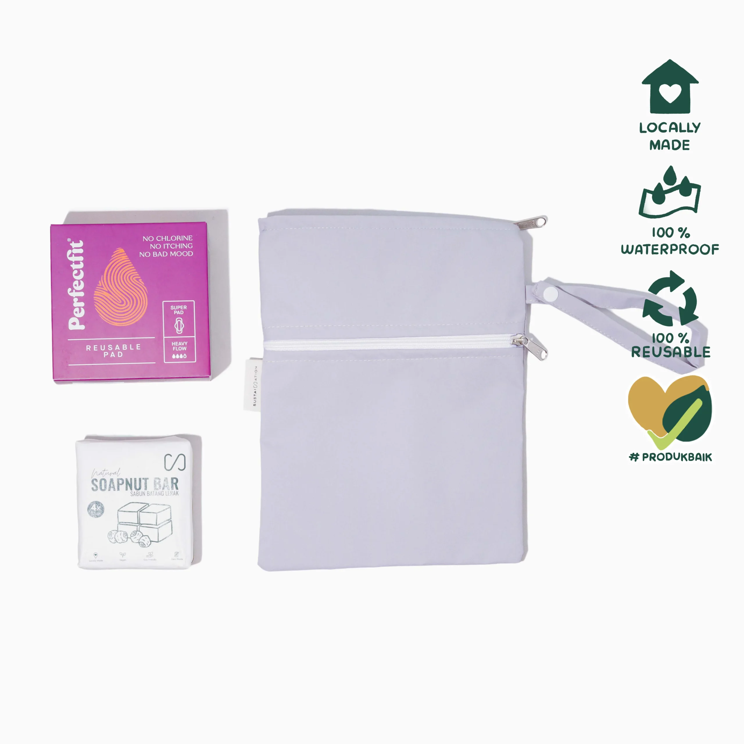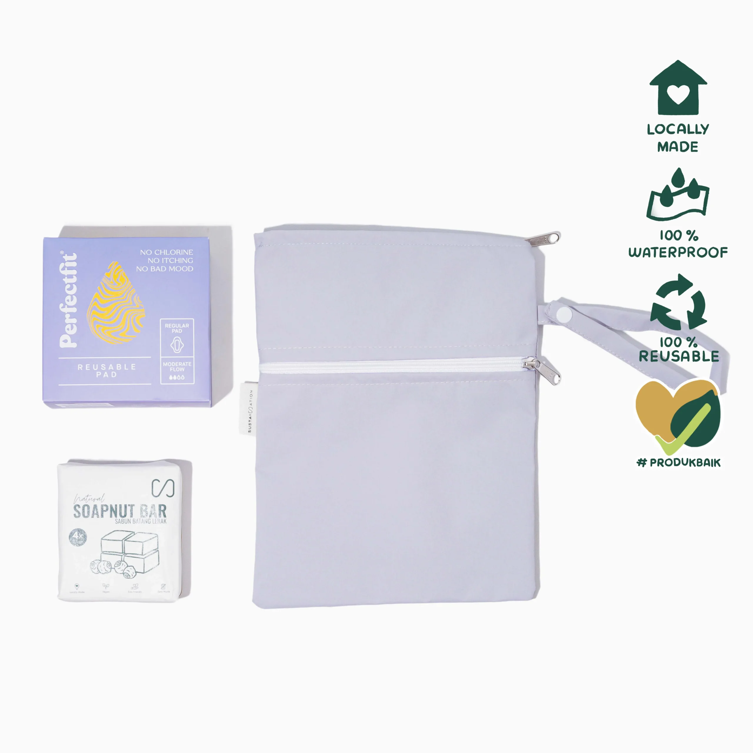 - Cuci pembalut kain Perfect Fit sebelum pemakaian pertama