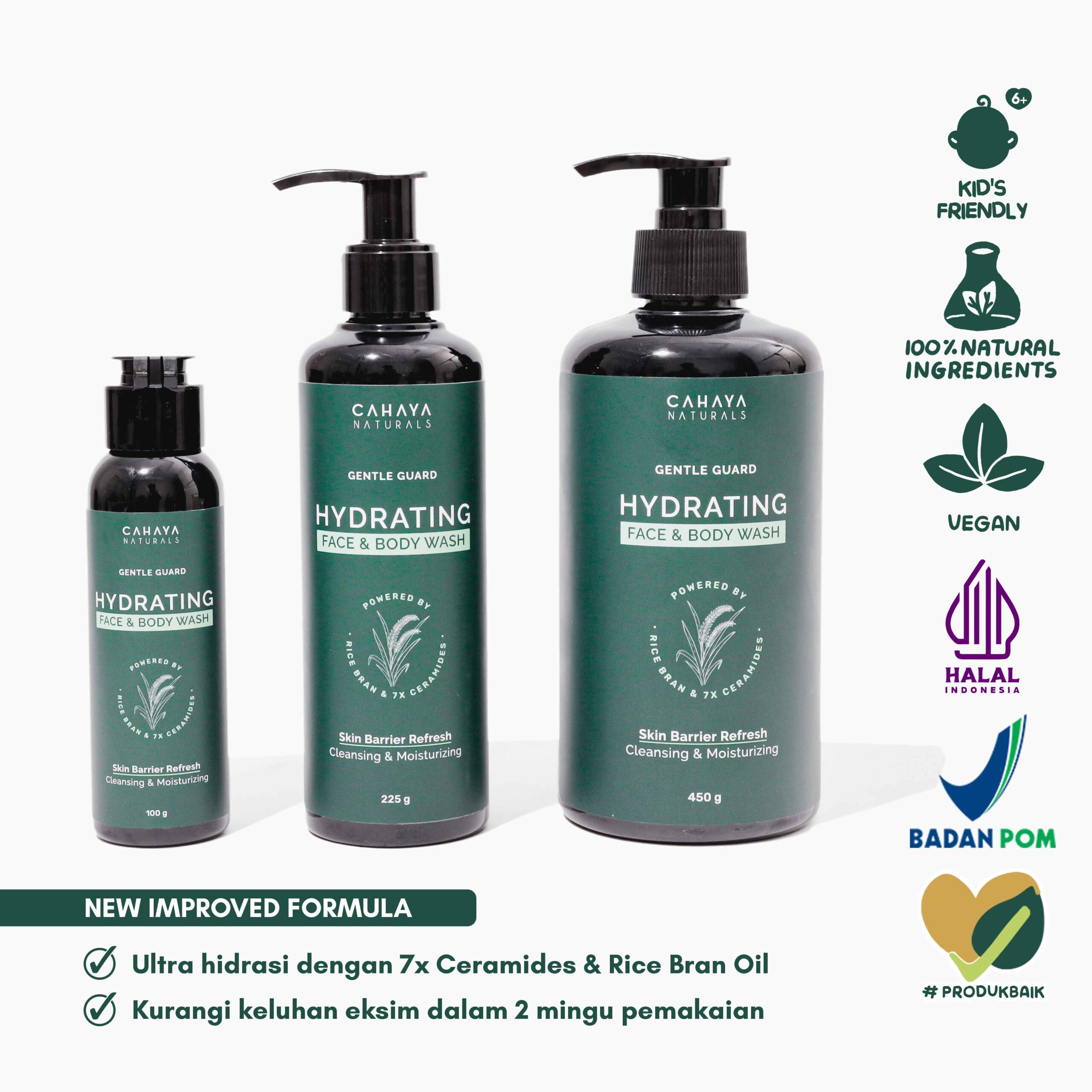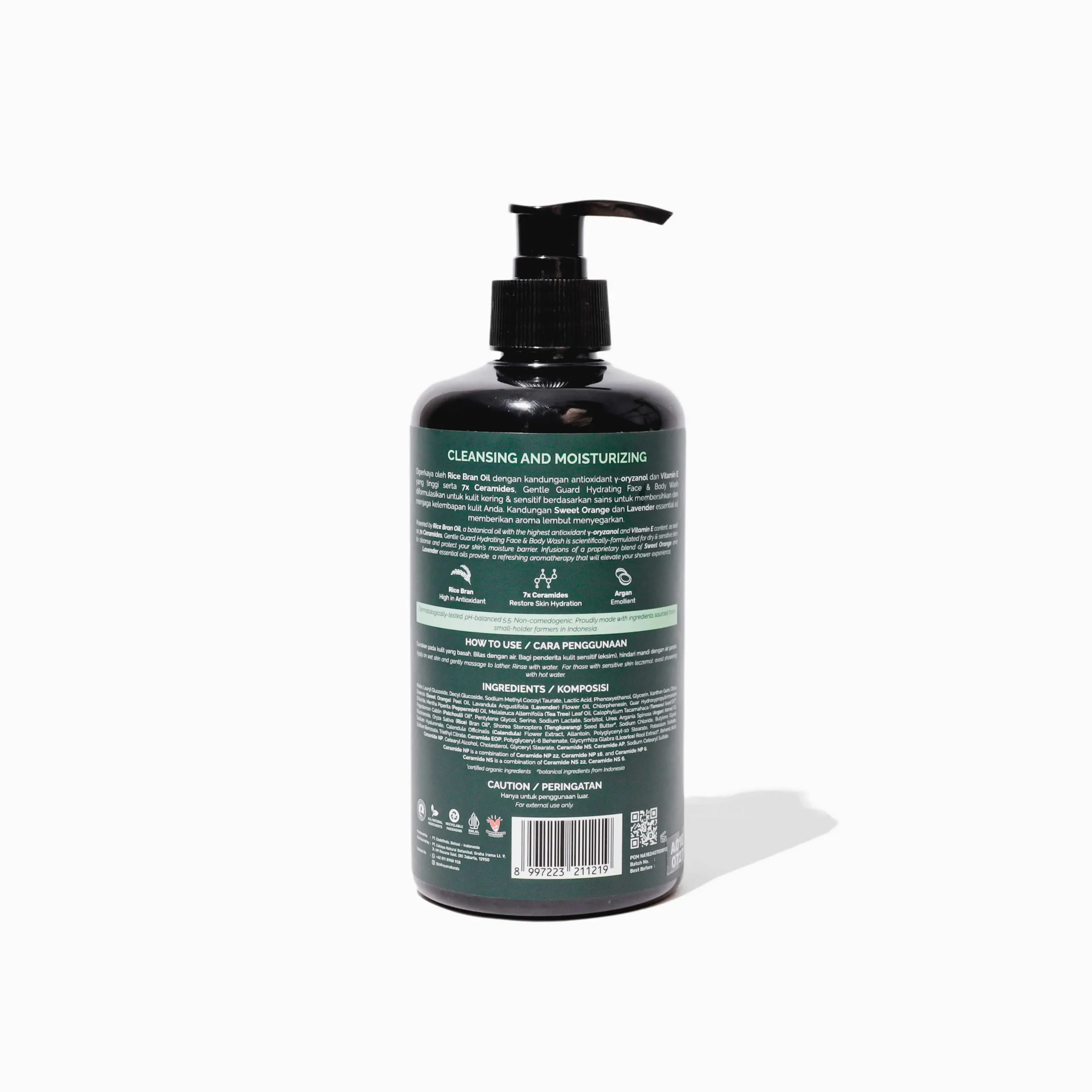 Sabun alami ini diperkaya dengan Rice Bran Oil yang kaya akan antioksidan dan Vitamin E, serta 7x Ceramides. Gentle Guard Hydrating Face & Body Wash diformulasikan secara ilmiah untuk kulit kering dan sensitif, menjaga kelembapan kulit Anda. Dilengkapi dengan Sweet Orange dan Lavender Oil, yang memberikan aroma lembut dan menyegarkan.