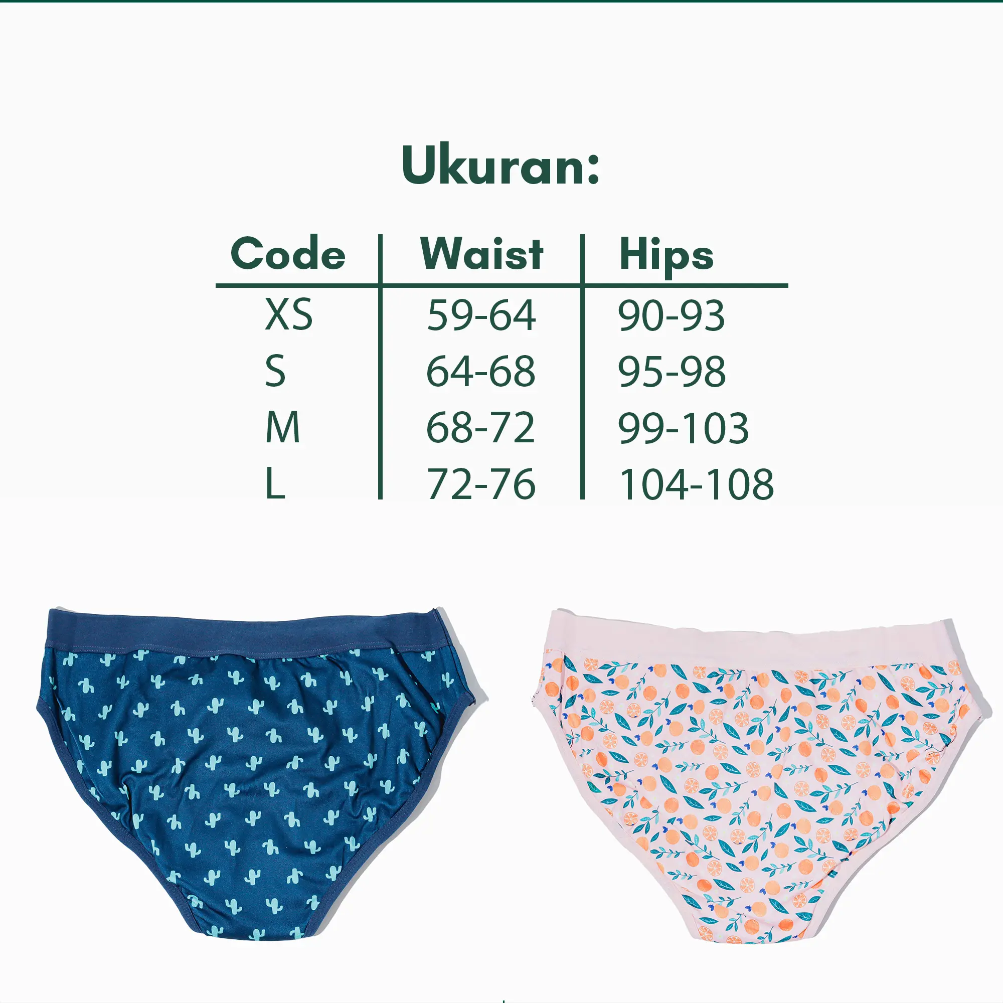 Pemakaian seperti celana dalam biasa. Dapat digunakan sebagai pengganti pembalut / tampon, atau sebagai perlindungan ekstra ketika memakai menstrual cup. Indikator jam yang tertera pada deskripsi produk bukan sebuah ‘aturan’ yang harus diikuti persis. Pakailah celana dalam ini layaknya pembalut pada umumnya dimana ketika sudah terasa penuh atau sangat lembab, maka harus segera diganti untuk mencegah over-kapasitas / bocor.
