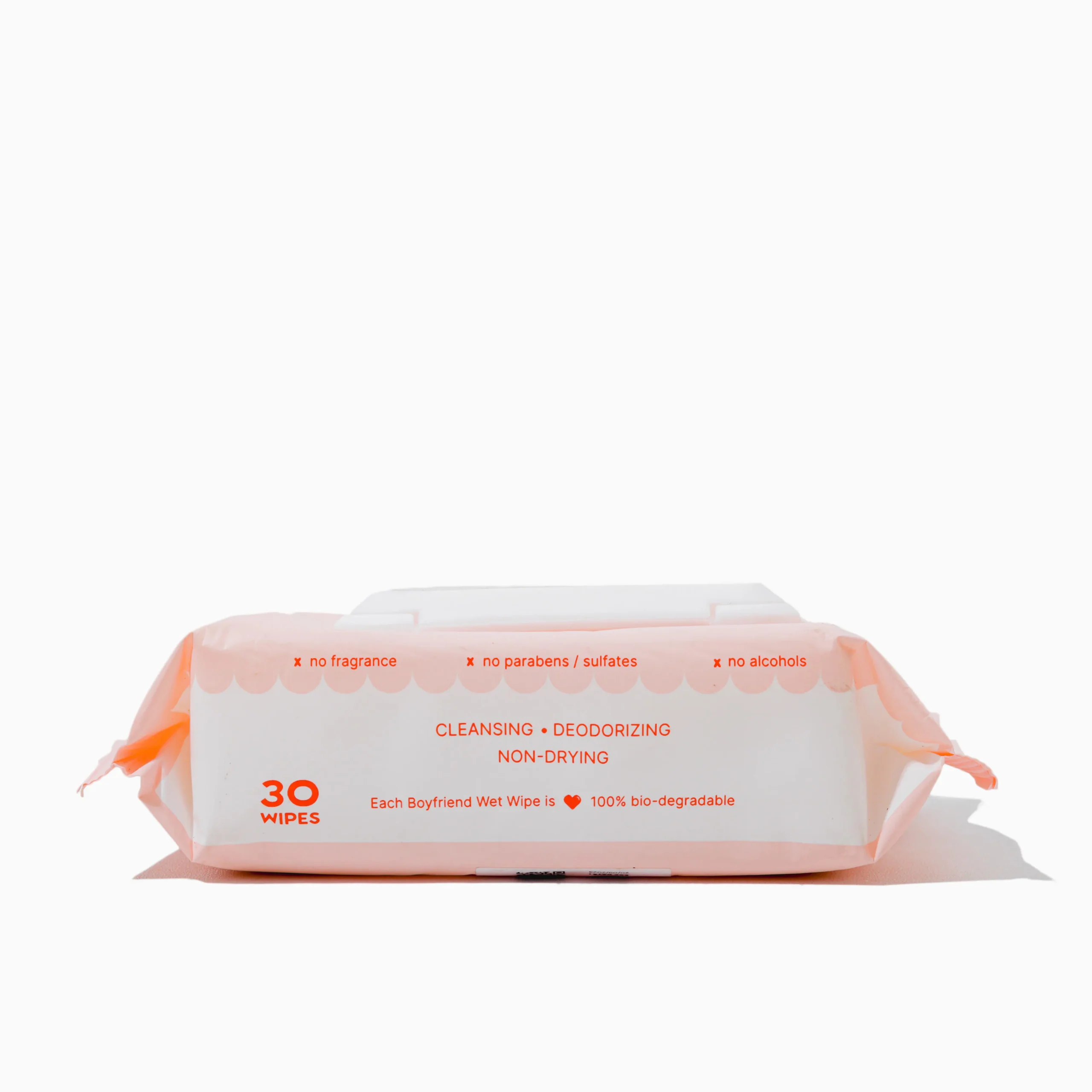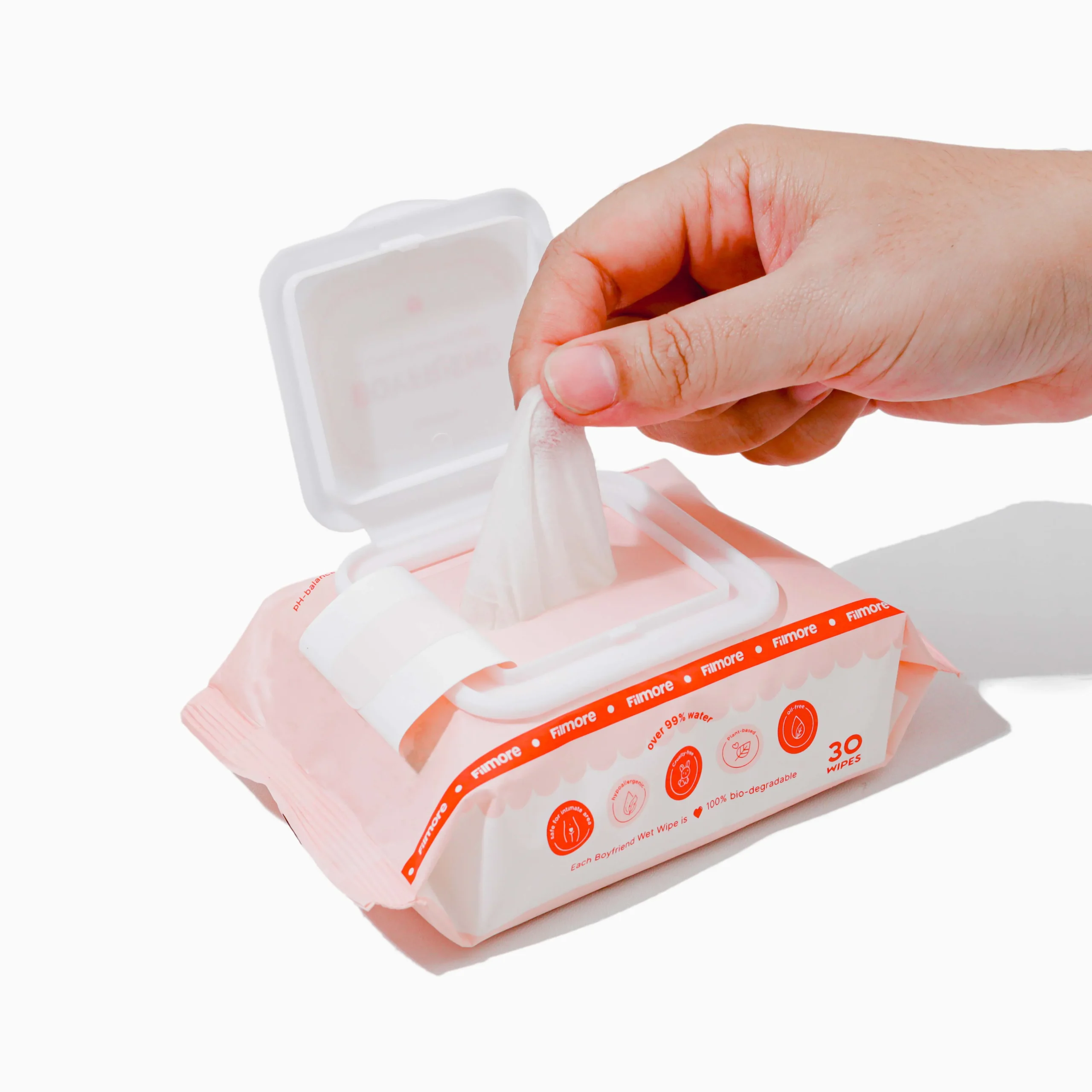 Boyfriend Wet Wipes adalah tisu basah khusus area intim tanpa rasa lengket dan lembab yang terbuat dari serat bambu yang dapat terurai (biodegradable) sehingga dapat di-flush ke dalam toilet.