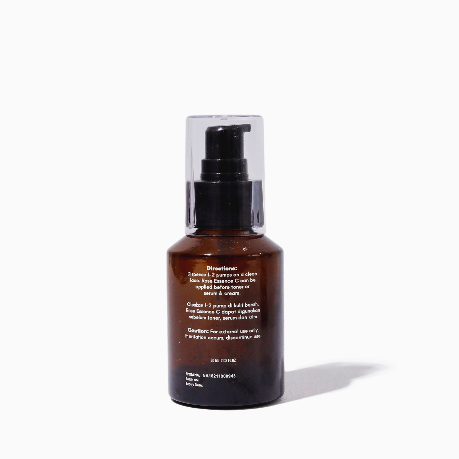 Cara penggunaan : Oleskan 1-2 pump di kulit bersih. Rose Essence C dapat digunakan sebelum toner, serum dan krim