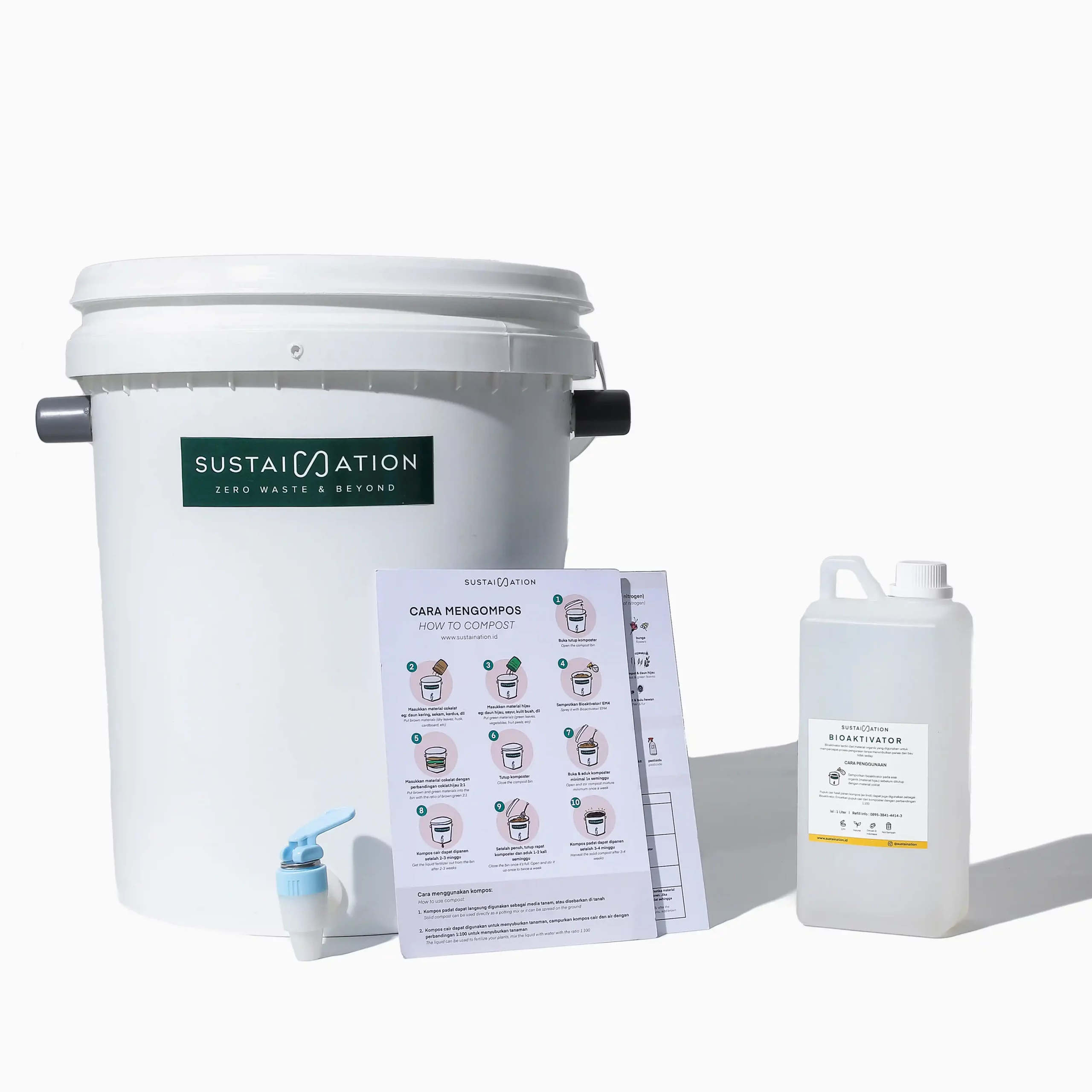 Kamu juga tidak perlu khawatir mengalami kebingungan untuk mulai mengompos. Setiap pembelian satu set Komposter Ember Sustaination 25 L dari: