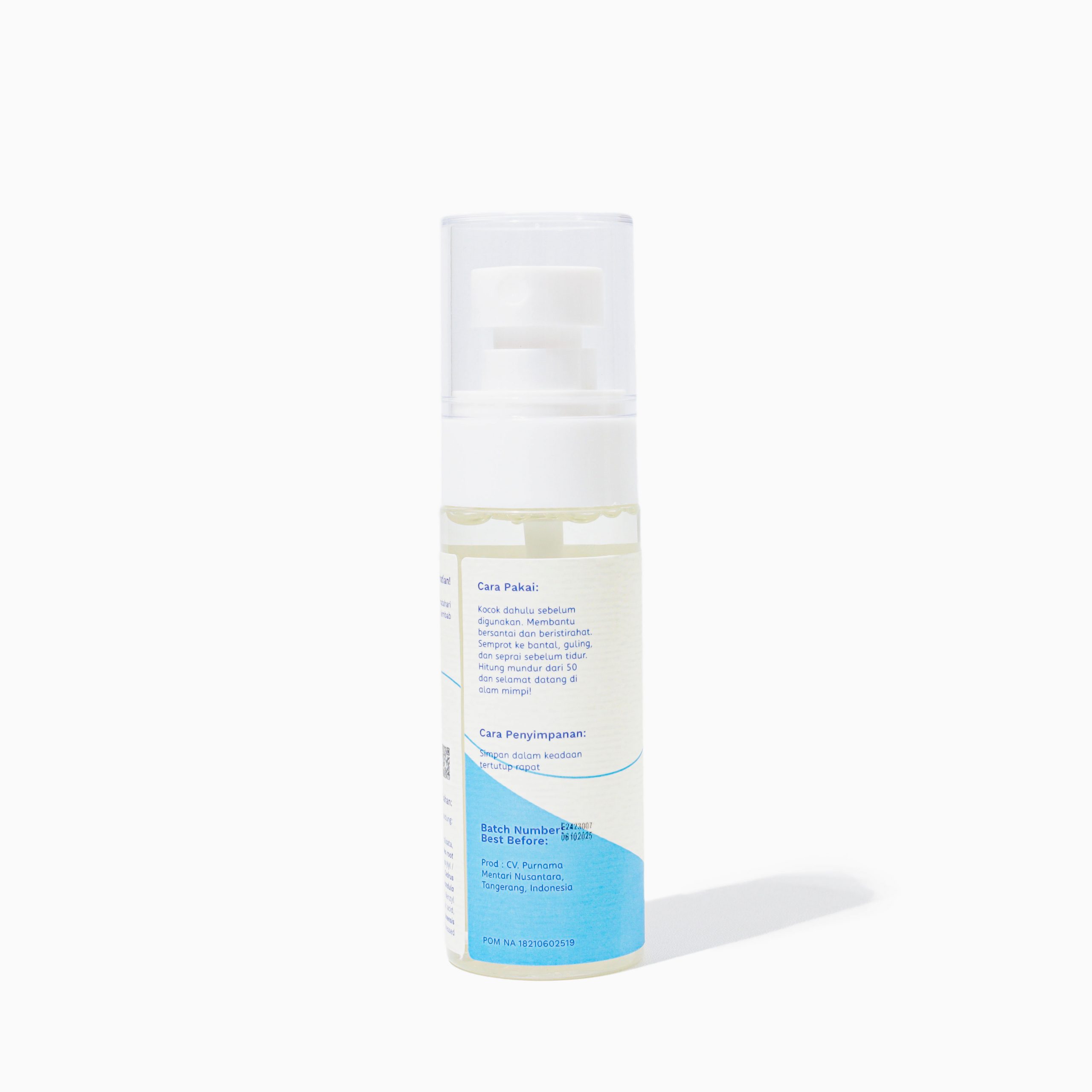 Kocok dahulu. Semprotkan ke bantal, guling, dan sprei (bahkan ke baju tidur/piyama!). Hirup aromanya, hitung mundur sampai 50, dan selamat datang di negeri mimpi!