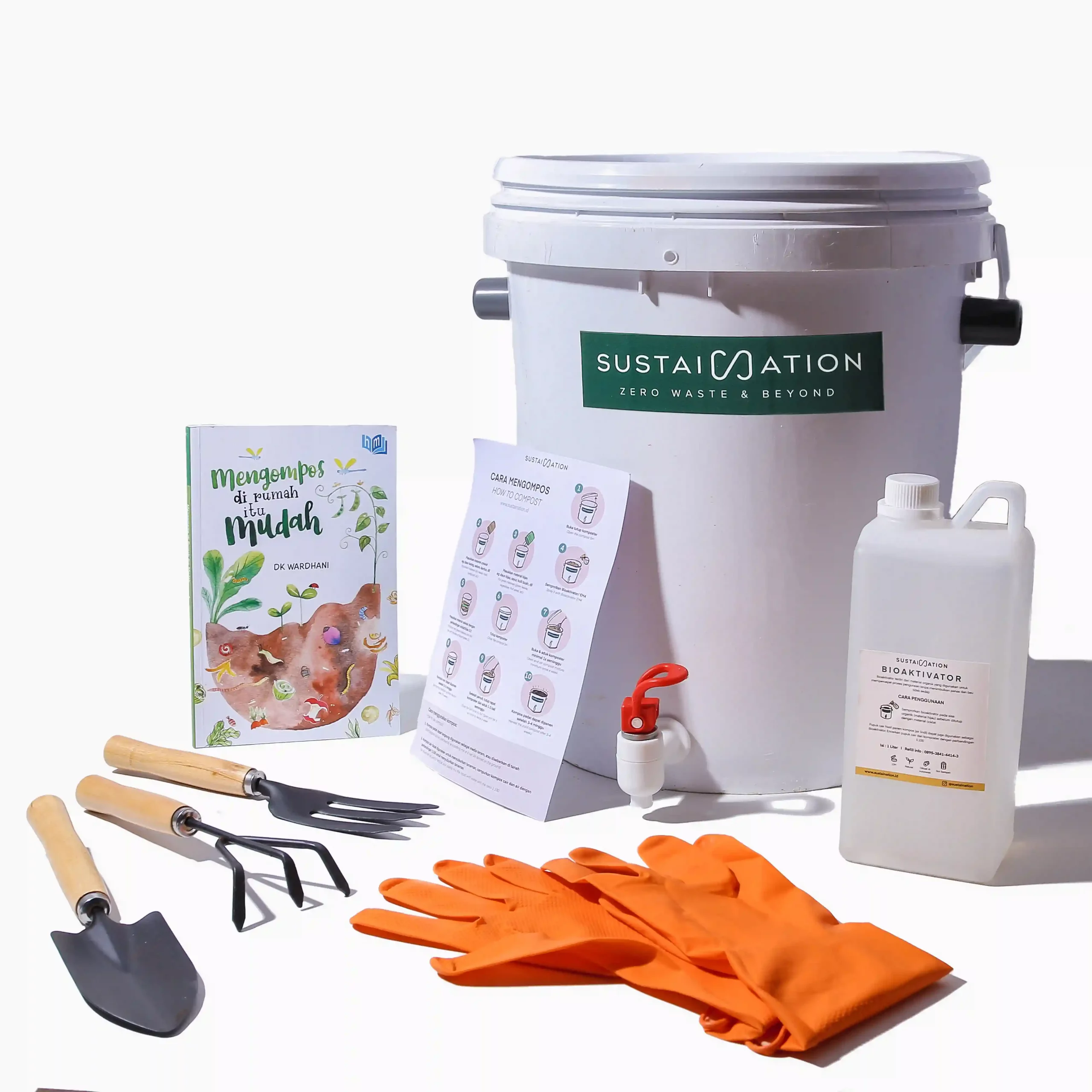 Mulai mengkompos di rumah atau kosan? Komposter dari Sustaination ini dapat mendukung perjalanan minim sampahmu. Terbuat dari upcycle ember plastik, komposter ini tetap terlihat cantik dan compact untuk disimpan outdoor ataupun indoor.