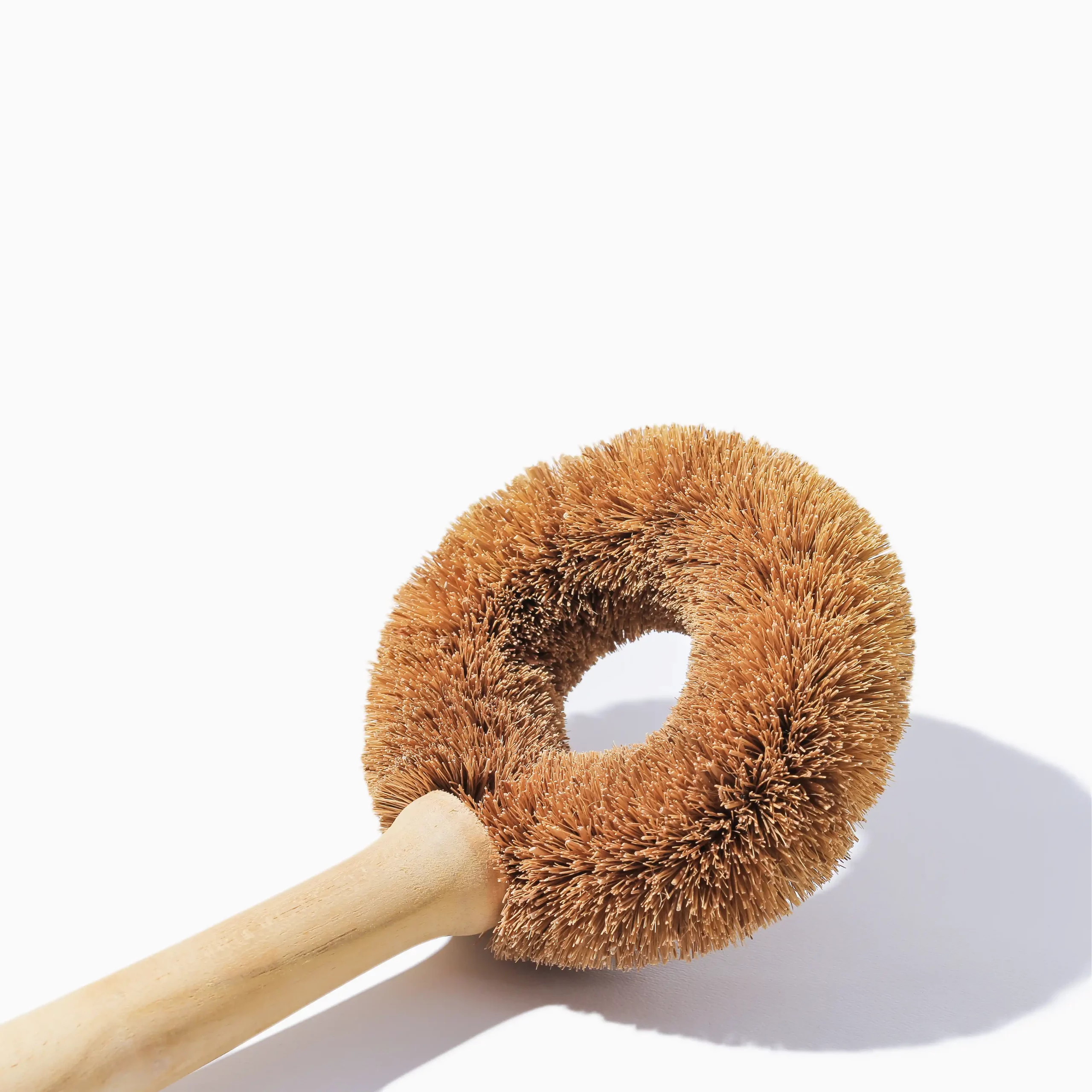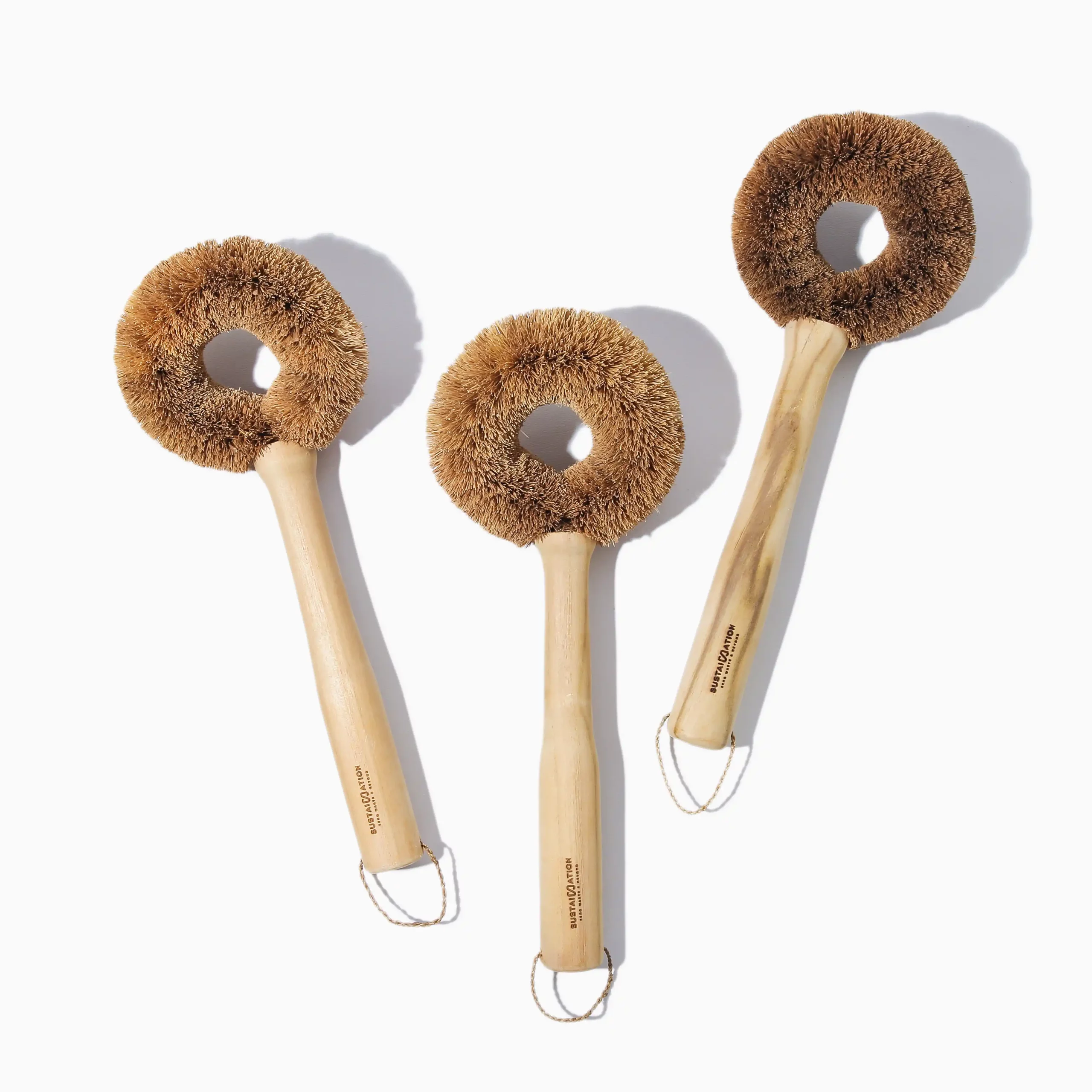 Sustaination menyediakan alternatif sikat wajan ini untuk membersihkan peralatan masakmu! Terbuat dari dari serat kelapa dan limbah kayu jati sisa furnitur, material sikat wajan donat ini dapat dikomposkan, dan yang pasti 100% dibuat di Indonesia oleh pengrajin lokal kami di Cilacap.