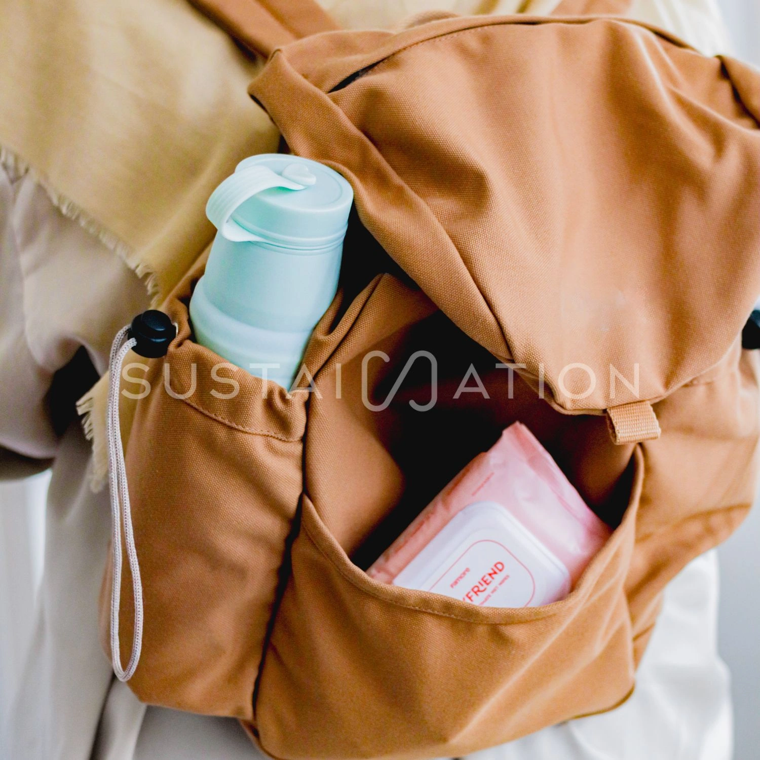 Botol minum lipat Sustaination terbuat dari 100% premium silicon foodgrade BPA FREE dan FDA Approved. Ringan dan praktis dibawa kemana saja. Cocok untuk semua usia, mulai dari anak-anak hingga dewasa.