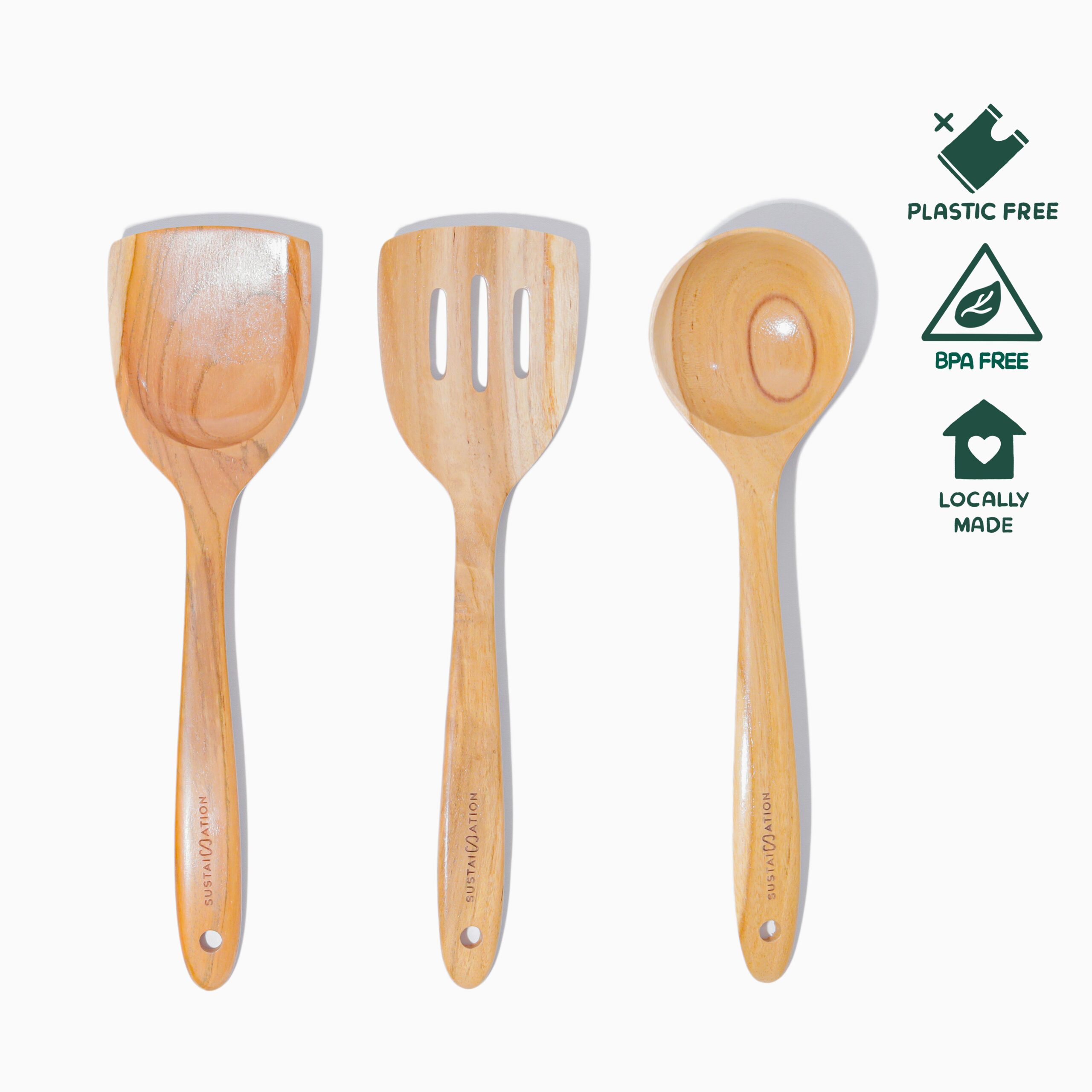 Alat Masak Premium Kayu Jati ini terbuat dari bahan berkualitas.Menggantikan peralatan dapur yang terbuat dari aluminium/plastik. Tidak hanya ramah lingkungan namun lebih bagus untuk kesehatan.