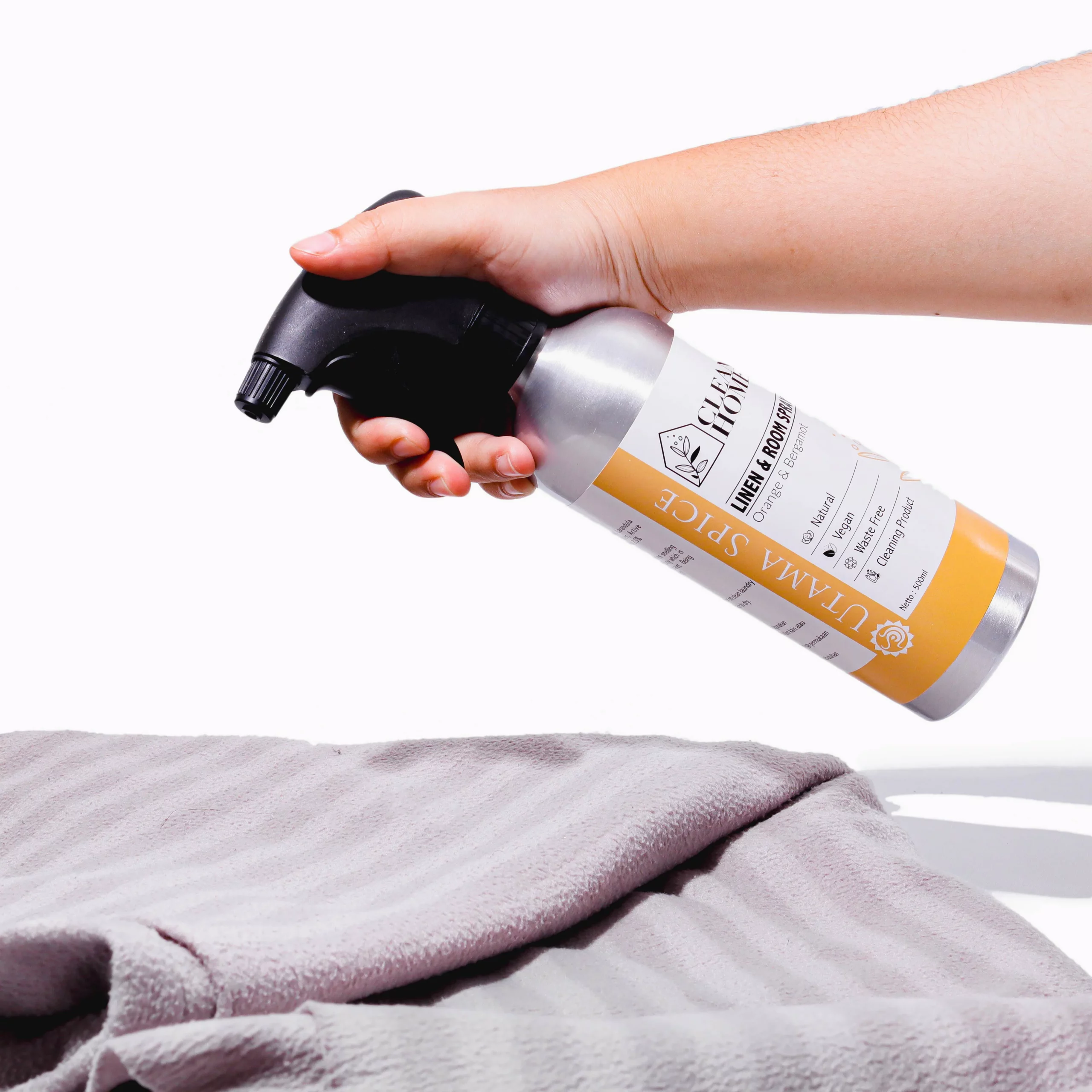 Utama Spice Natural Bed & Linen Spray membuat setiap ruangan menjadi tempat yang menyegarkan dan menyenangkan. Linen Spray kami berbahan dasar tanaman yang dirancang untuk menjaga rumah dan pakaian Anda tetap harum dan segar, tanpa menggunakan bahan kimia yang keras atau pewangi buatan. Dengan aroma jeruk bergamot yang menyegarkan, Anda akan merasa seperti berjalan di antara kebun jeruk setiap kali menggunakannya.